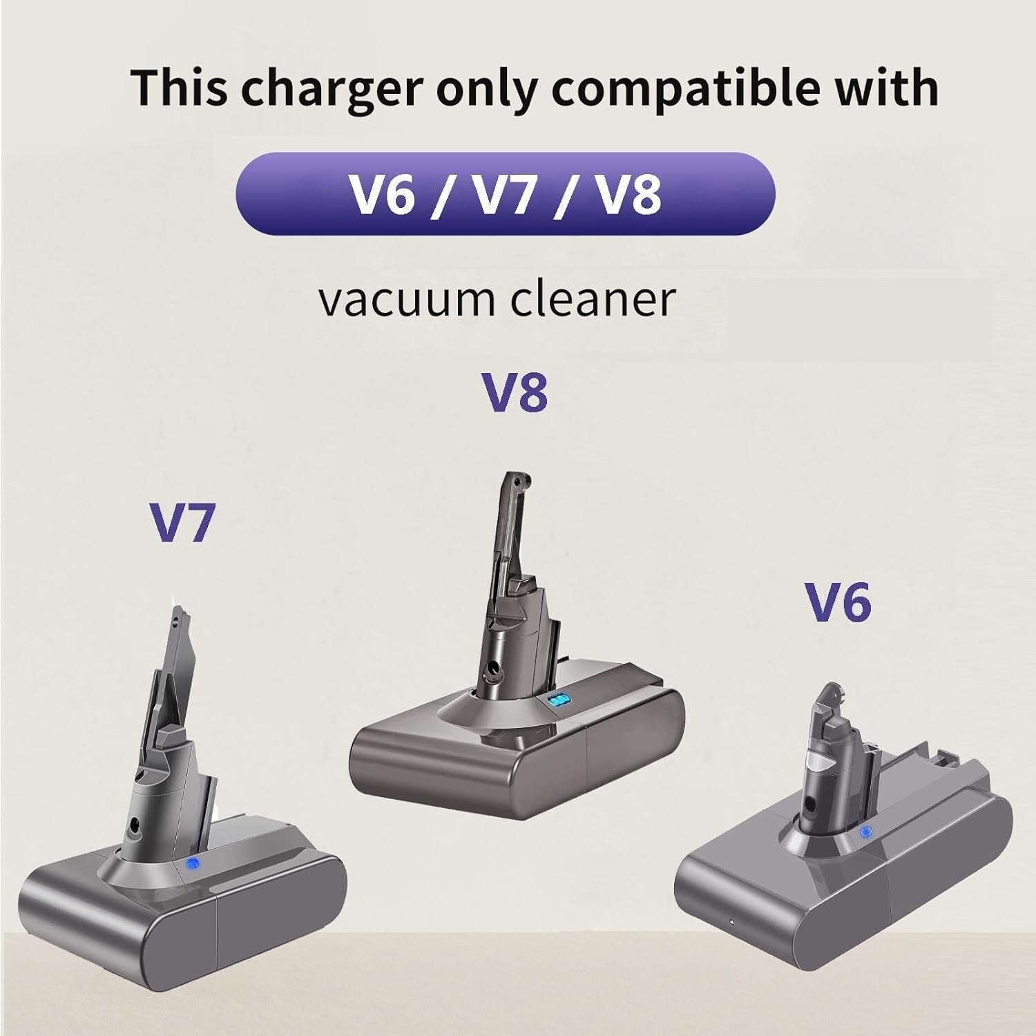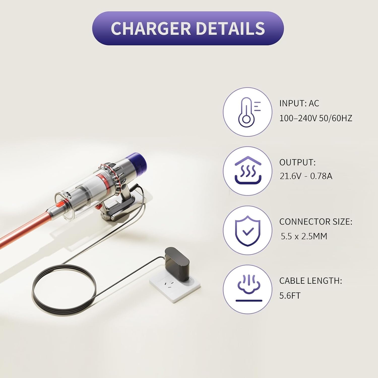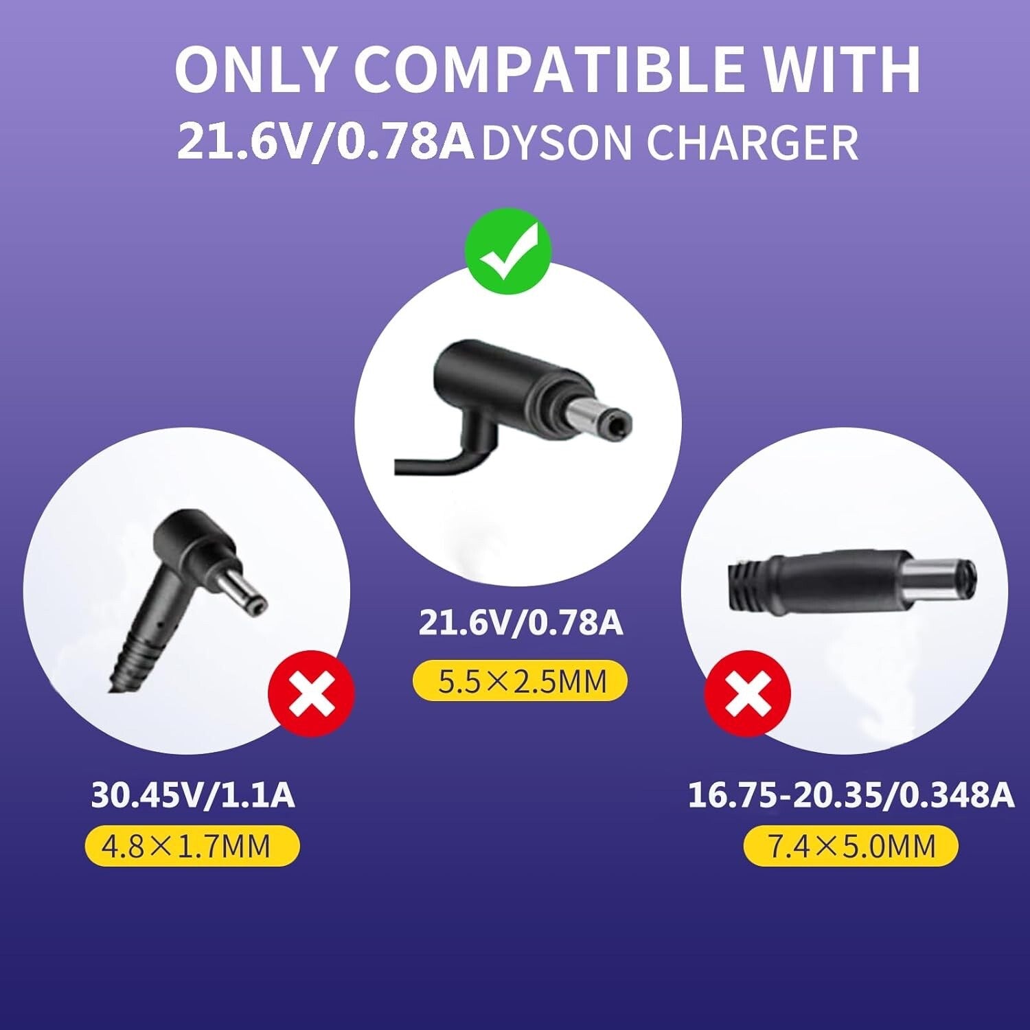 Replacement Charger for Dyson V6 V7 V8, Fits for Dyson DC58 DC59 DC61 DC62 SV03 SV04 SV05 SV06 Absolute Animal Fluffy Motorhead Cordless Vacuum Cleaner Charger, Fits 205720-02 Charging cord for Dyson. Input:100-240V, 50-60Hz; 0.6A; Output: 26.1V - 0.8A. PLEASE NOTE THAT IT WILL NOT FIT : DC30 DC31 DC30 DC34 DC35 DC44 DC45 DC56 DC57 Vacuum! Please check voltage and connector size before you buy, if it's the same with it, then you can sure it can be replacement your original adapter well. This dyson v8 charger is compatible with V6 Cordless Vacuum, V8 Absolute Cordless Vacuum, V8 Animal Cordless Vacuum, V7 Absolute Cord-Free Vacuum, V7 Motorhead Cord-Free Vacuum. Replacement adapter for dyson v6 battery fits V6 DC58 DC59 DC61 DC62 SV03 SV04 SV05 SV06; Fit part number: 209462-01, 209468-01, 209568-01, 210334-01, 210675-01, 965875-07, 965875-05, 965876-01, 64506-07, 64506-01, 205720-02, 214730-01 , 227591-01 , 229602-01, 965875-07 , 967813-02, handheld vacuum cleaner. This replacement adapter for dyson battery is CE, FCC, ROHS, PSE certified and OEM product specifications. Built in over-voltage protection, over-current protection, over-load protection, short circuit protection. This v8 battery adapter comes with 30 days money back and 1 year to repair warranty, 24*7 hour friendly customers service. Specification Input: AC 100 - 240V 50/60Hz Output: 26V 0.8A (800mA) Center Tip: Positive Compatible with (Please Use the “Ctrl+F”) For V6 Motorhead Exclusive For V6 Animal Extra / Handstick For V6 Fluffy Handstick For V6 Absolute Handstick For V7 Absolute / V7 Motorhead For V8 Absolute / V8 Animal For DC59 Motorhead For DC59 Animal V6 For DC62 Animal Handhelds Vacuum For Motorhead DC58, DC59, DC60, DC61, DC62, DC72 For Animal Handhelds DC-58, DC-59, DC-60, DC-61, DC-62 DC-72 Replace Part Number For V6 209468-01, 210675-01, 209462-01, 210334-01, 209568-01, 64506-01 64506-07 965875-07 965875-05 6450601 6450607 96587507 96587505 (DC-72 DC58, DC59, DC61, DC62/SV03, SV05 ERP, SV06) , Wall Dock Docking Station ( for OEM# 965876-01 ) NOTE - NOT COMPTIBLE MODES NOT for DC30 DC31 DC30 DC34 DC35 DC44 DC45 DC56 DC57
