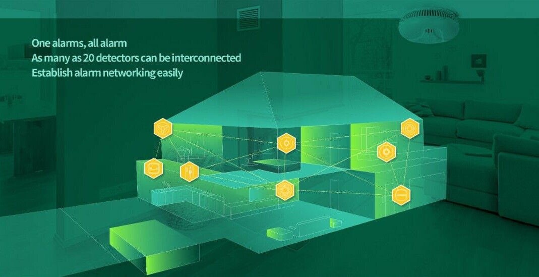 - Wireless interconnect with up to 20 alarms