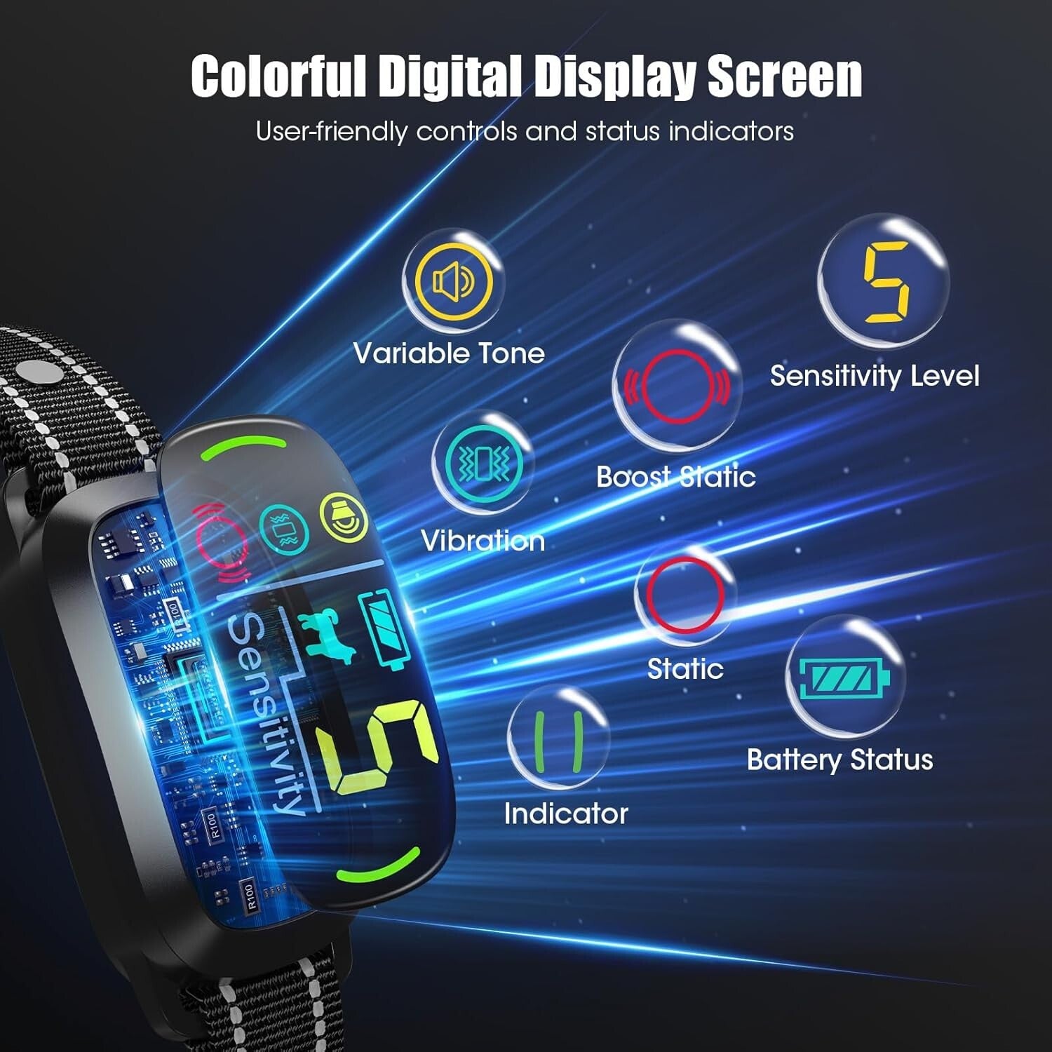- AI-Enhanced Bark Recognition: Powered by an advanced AI chip with voiceprint recognition, the OZKEY anti-bark collar detects barking in just 0.01 seconds while filtering out background noise. No more false triggers — only accurate, real-time bark control.