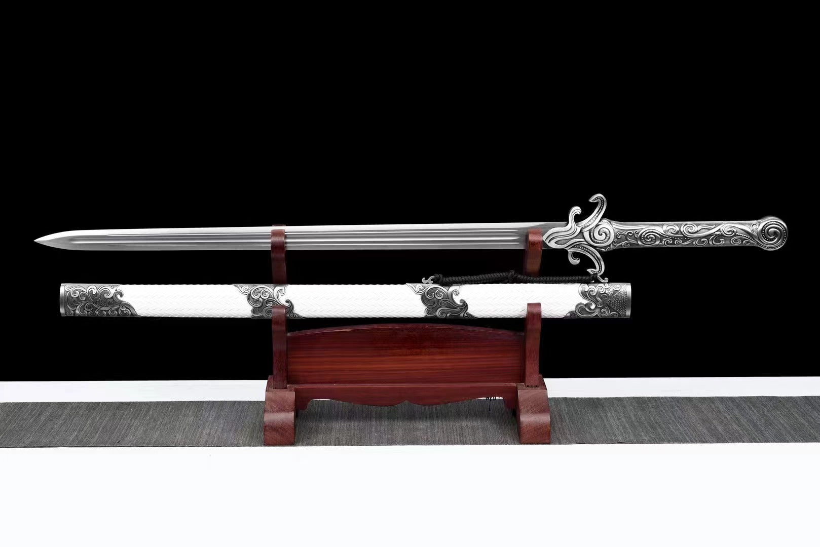 Description: Blade made of pattern steel, fittings are copper, and the scabbard is made of redwood.