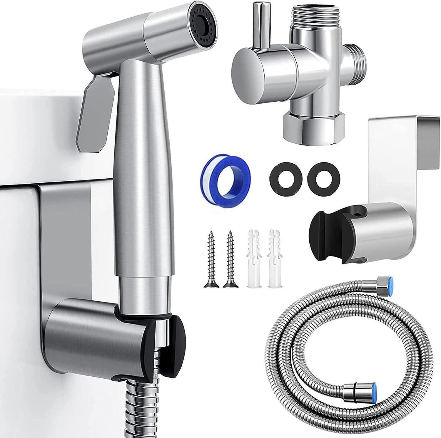 New Version Handheld Bidet Sprayer for Toilet, Premium Stainless Steel Bathroom Bidet Sprayer Set, Baby Cloth Diaper Sprayer with Superior Complete Accessories, Support Wall or Toilet Mount
